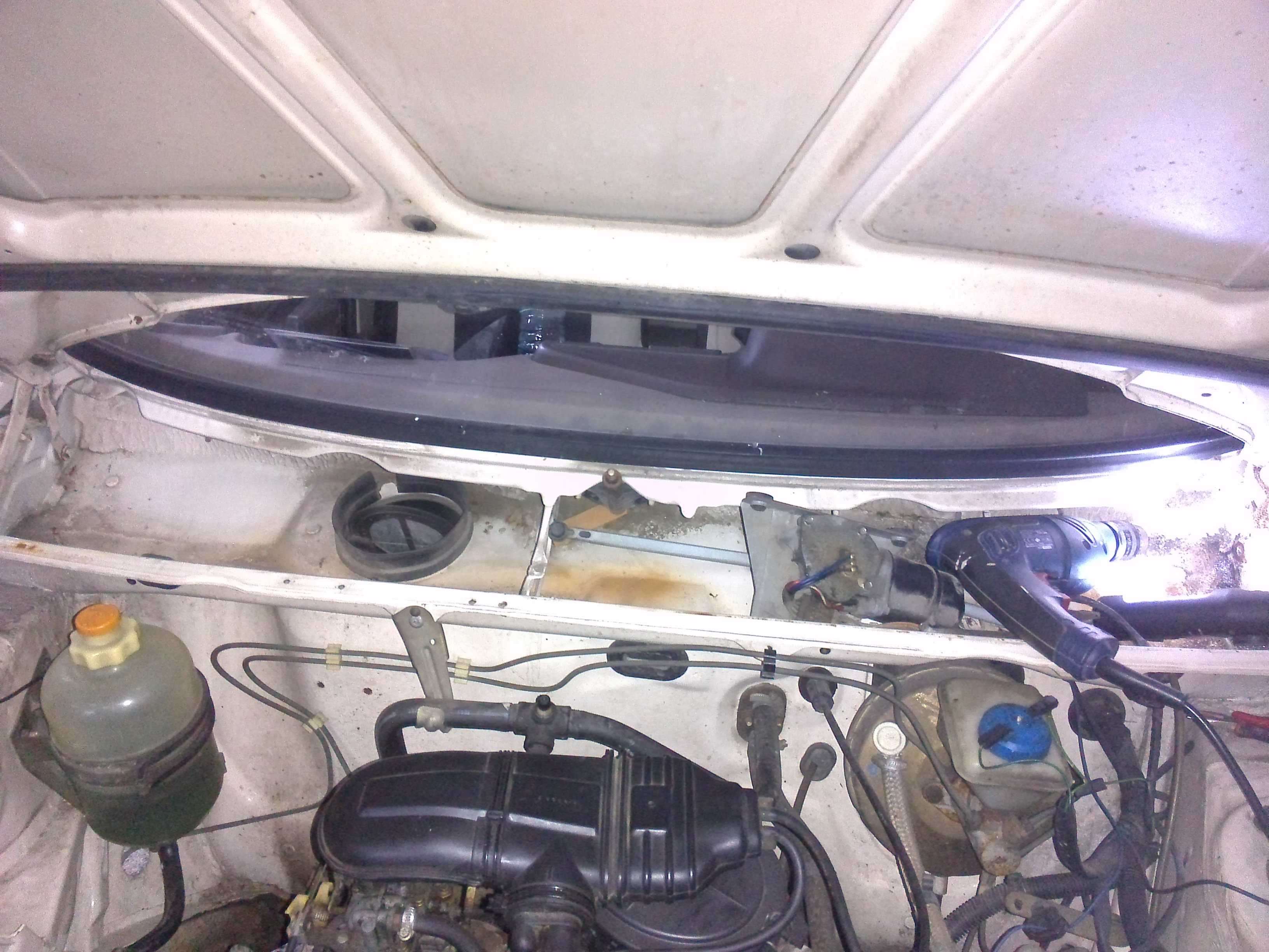 Il te suffit de déposé la grillé en plastique noir, les essuie glace le moteur d'essuie glace et sa tringlerie, ce qui te prendra au max 20 min.